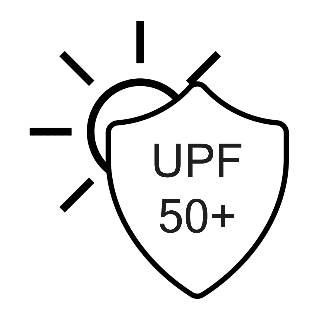 UPF 50+ is the highest rating for fabrics. It means that the fabric blocks 98% of UV rays.