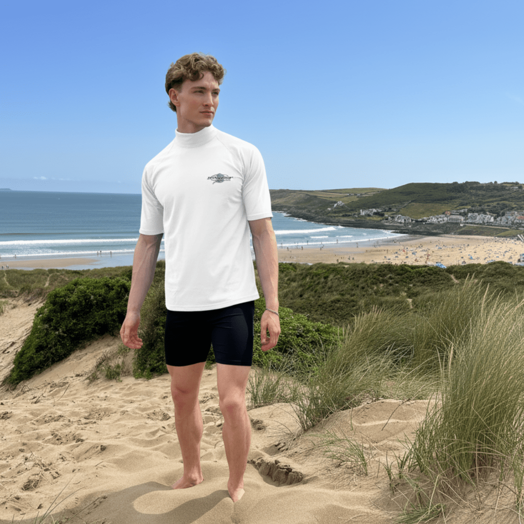 This short-sleeve rash shirt is perfect for men requiring extra sun protection, particularly those with medical conditions that make them more susceptible to UV damage. It offers UPF 50+ sun protection, making it suitable for people with:
